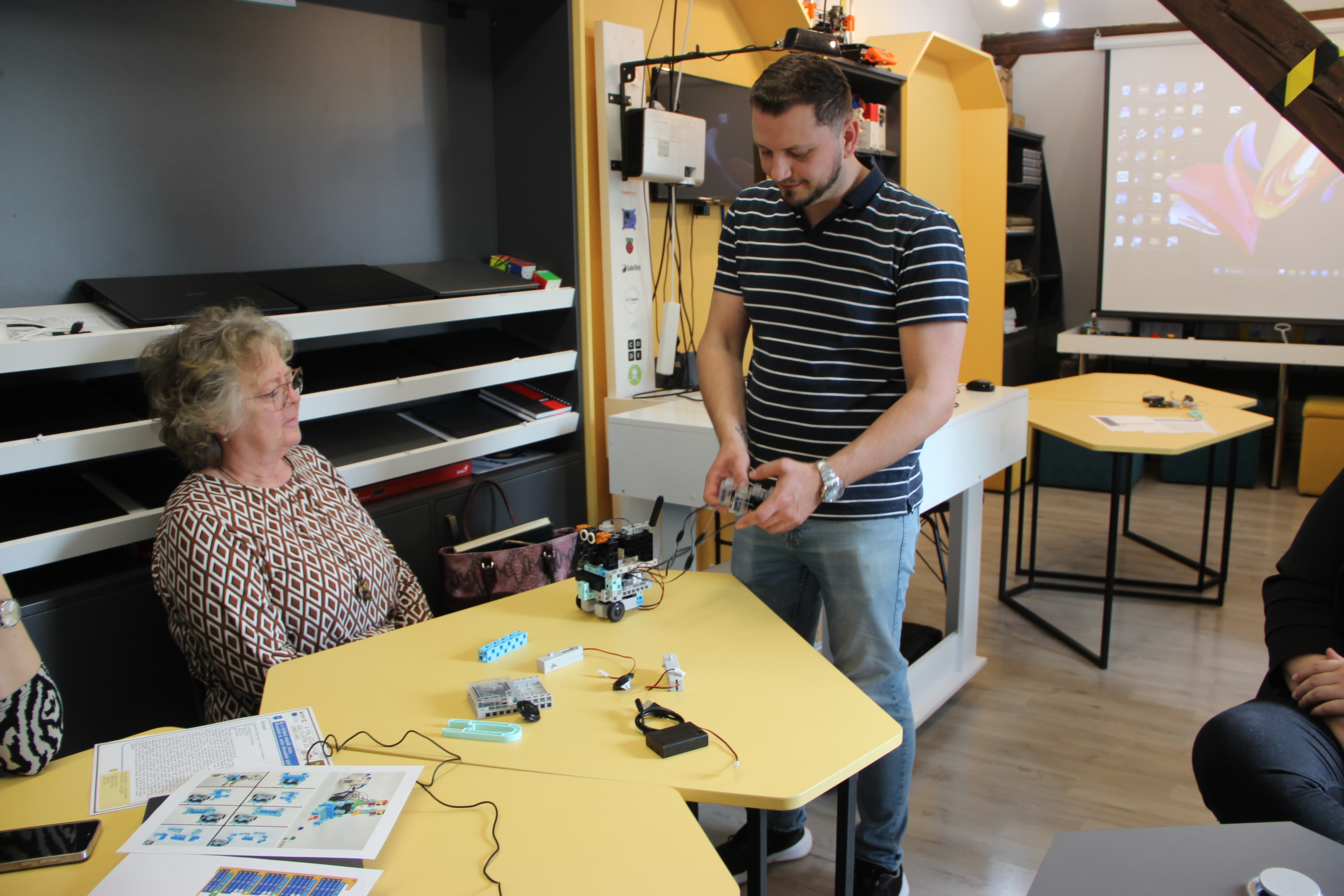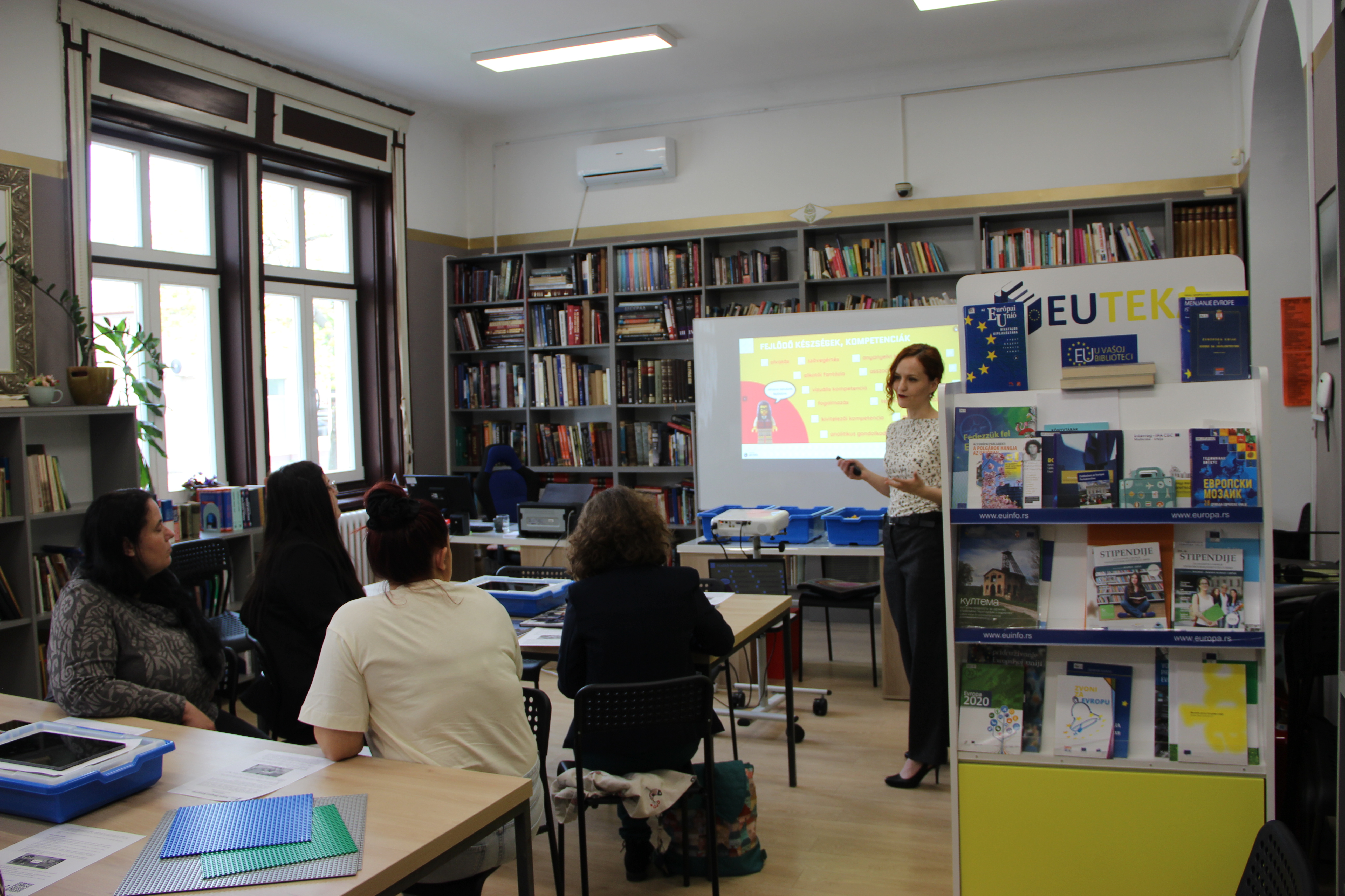 2026. április 15-én a Békés Megyei Könyvtár könyvtárosai, Palkovics Brigitta Éva, Nagy Levente és Kertész Zoltán tartottak akkreditált továbbképzést vajdasági könyvtárosoknak a robotikai eszközök könyvtári gyermekfoglalkozásokban való felhasználásáról. Kertész Zoltán, a Békés Megyei Könyvtár igazgatóhelyettese ismertette az intézmény digitális kompetencia-fejlesztésre irányuló tevékenységeit, elsősorban a Digilabor működését, ahol a könyvtárlátogatóknak akár egyénileg, akár szervezett foglalkozások keretében lehetőségük van igénybe venni a különféle digitális és egyéb eszközöket (pl. 3D-nyomtató, fotó- és podcaststúdió, varrógép stb.). A folytatásban a könyvtárosok három mintafoglalkozáson vehettek részt. A LEGO Story foglalkozáson a részvevők különféle szövegek, esetleg saját történeteik jeleneteit építik fel Lego elemekből, majd az azokról készített fotókból képregényt szerkesztenek. Egy másik foglalkozáson az Abacusan ArTec robotokkal ismerkedhettek a könyvtárosok. Az alap itt is valamilyen irodalmi szöveg feldolgozása, a hangsúly azonban nem a történetmesélésen, hanem a programozás alapjainak elsajátításán van. A Robotizált mese című foglalkozás a legkisebbeknek szól, hiszem a feldolgozott népmese is ismerős lehet számukra, és a kapcsolódó feladat (a mese eljátszása különféle figurák, egy robot és a robot pályájának megrajzolása) is a korcsoport képességeihez illeszkedik. Mindhárom foglalkozás nagyban hozzájárul a gyerekek olvasási és szövegértési képeségeinek, valamint digitális kompetenciáinak fejlesztéséhez, de a kommunikációt és a csapatban való munkát, együttműködést is fejlesztik.
